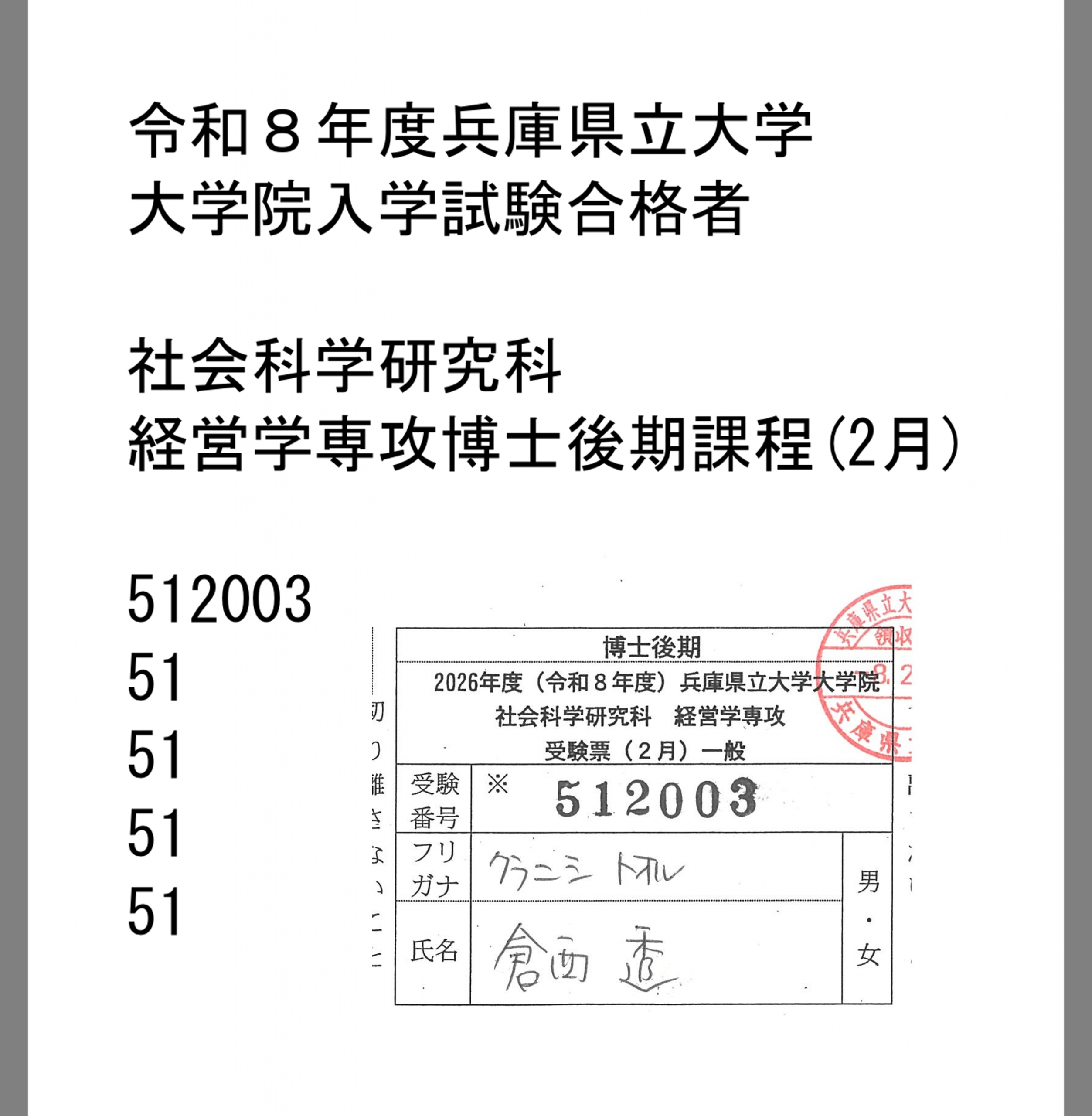 2026.02.24桜咲く 久しぶりの投稿になります。 社長の倉西です。 すっかり、社員さんが更新して下さることに甘えてしまい、 ブログ更新から遠ざかっていました。 さて、お題の通り一足早い桜が咲きました。 博士課程の入学試験合格。 昨年も受験しましたが不合格。 一年間、懸案事項であった英語の翻訳について、様々な方の協力のもとに必死で勉強しました。 おかげさまで、まぁまぁの翻訳力は身に着いたのではないかと思います。 T先生、H先生、私のつたなかった英語力の向上に根気強くお付き合いいただき 本当に有難うございました。 そして、家族並びに社員さんたち、陰から支えていただき本当に有難うございました。 ここから新たなスタート、頑張ります。