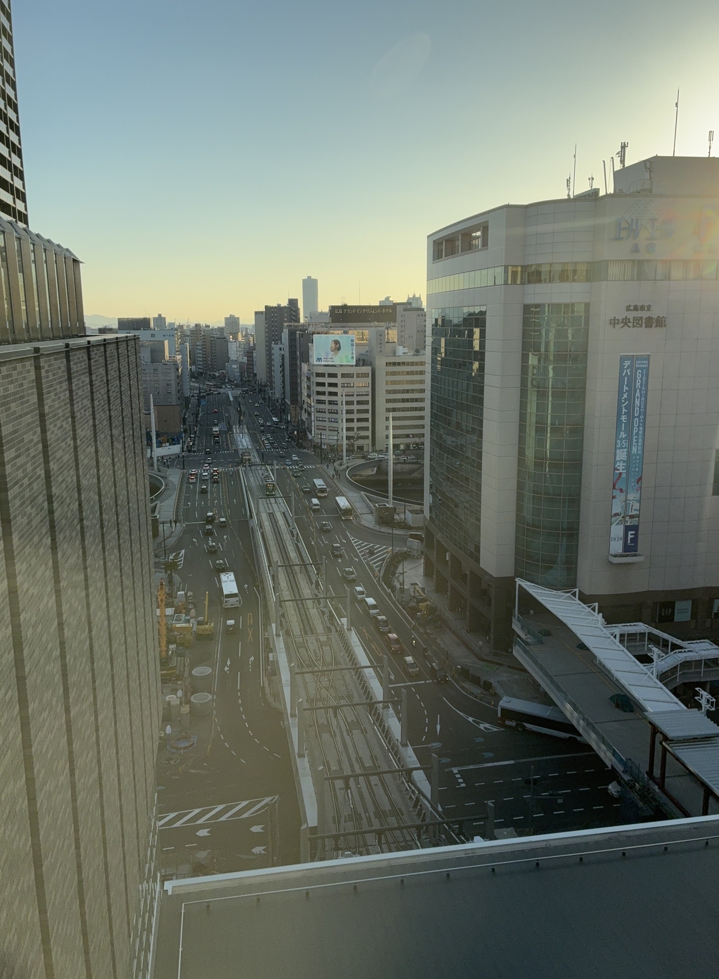 2026.02.26広島さんぽ 社員Mです。少し遠出をしようと思い、広島へ行ってきました。 新幹線に乗ってしまえば岡山から40分程度で到着するため、気楽な旅です。 広島駅に新たにできた商業施設や路面電車の乗り入れ部分を見に行くというのが今回の旅の一つの目標でもありました。 岡山駅もちょうど路面電車の乗り入れ工事真っ最中ですが、広島駅とは路面電車の利用者数も違えば路線数も違いますね。 駅の商業施設のテラスから駅周辺を見下ろした様子です。 市立の中央図書館が駅のすぐそばにあって便利そうと思って撮影したのですが、現在こちらに移転するために臨時休館中のようですね。 駅周りが活発に開発されているのを感じます。 旅行先だからきれいな部分だけ見えているというのもあるかもしれませんが、隣の県は便利そうで良いなと思わずにはいられません。 岡山から新幹線で出かけるのであれば大阪もほぼ同じ所要時間で行けるため大阪ばかり遊びに行っていましたが、広島旅も楽しかったです。